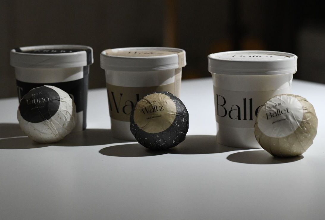 A bath bomb containing CBD. The packaging, which is the true essence of Willow, has adopted the design of an ice cream cup.